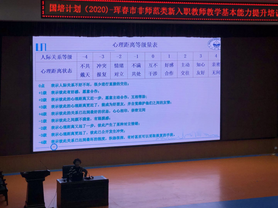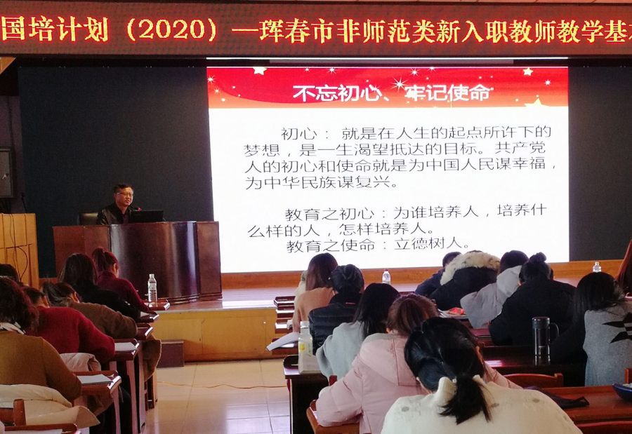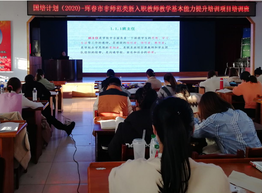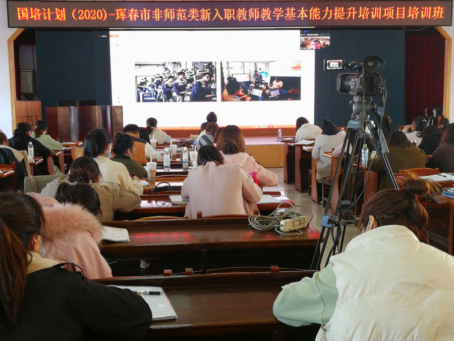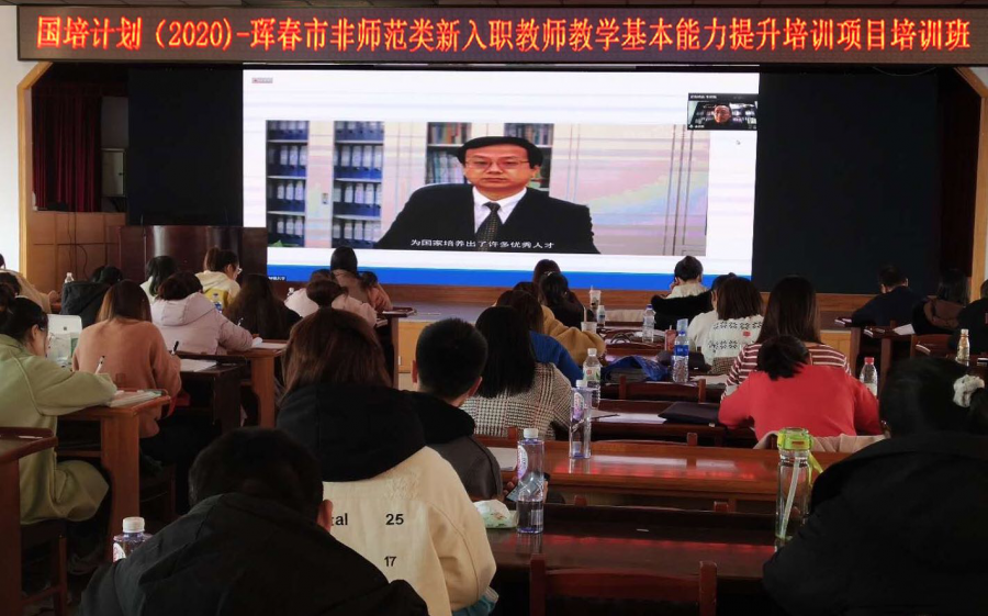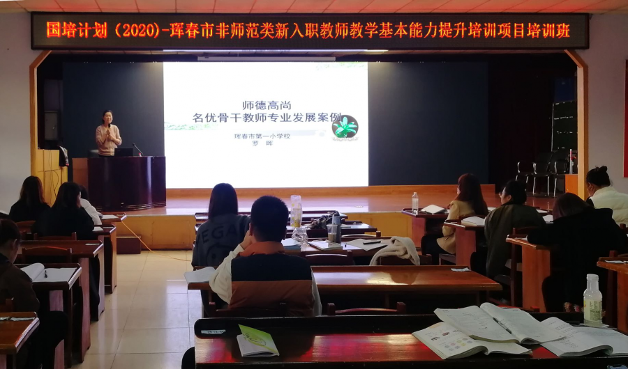 为落实吉林省教育厅2020年国培计划项目有关要求,切实开展好珲春市承担的G1103非师范类新入职教师教学基本能力提升培训项目(20天),帮助新入职教师尽快熟悉教学常规,提高教学设计与实施能力,助力新教师独立、规范开展日常教学工作,珲春市国培项目执行办、珲春市教师进修学校组织开展了“珲春市非师范类新入职教师教学基本能力提升实践性研究”主题培训活动。培训活动围绕“职业领悟与师德践行”“教学常规与教学实践”“班级管理与育德体验”“教学反思与教研基础”“教育理论与专业知识补偿”五个维度进行,珲春市相关中小学遴选出100人参加了此次培训。